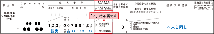 扶養控除(扶養控除等申告書の記載:一般の控除対象扶養親族)